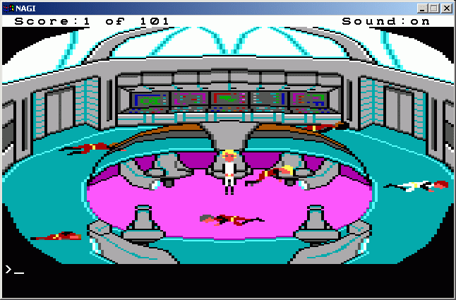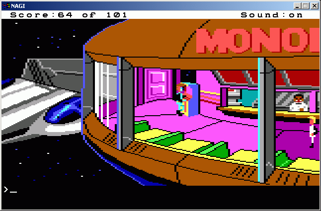 Sure, some fancy-pants out there will tell you that you need at least 16.7 million colors to make a decent game, but the screenshots below from Space Quest 0: Replicated (courtesy of Hiro Protagonist) beg to differ! Click each screenshot to open a full-size image in a new window.